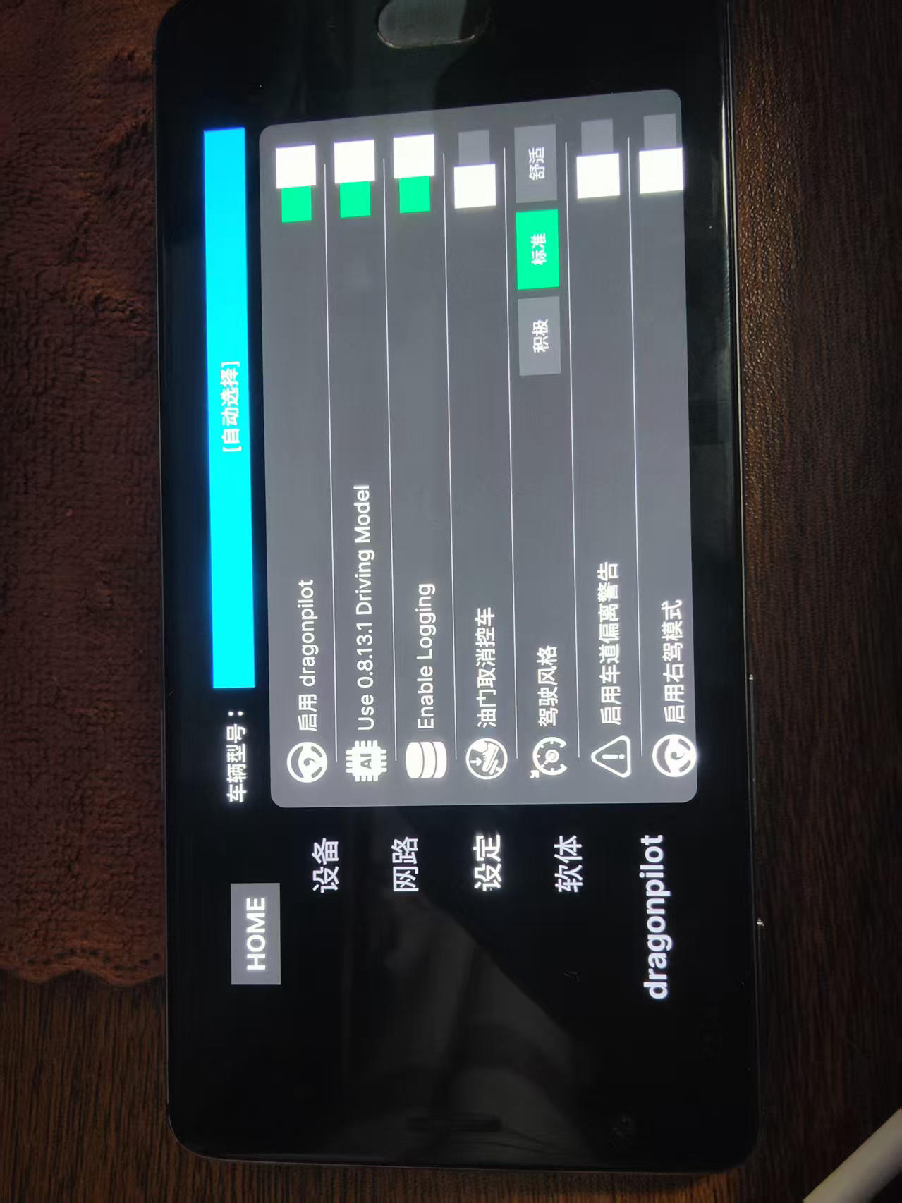 Welcome to the C2 NEOS Alternate Fix Install tool. This tool bypasses a bug in the NEOS setup screen where it always reports 'The network is not connected to the internet' even when it is. ----------------------------------------------------------------------- First, ensure your comma two is on the same Wi-Fi network as this computer. On your device, go to More Options. Touch the triple-dot icon in the upper right corner and select Advanced. Scroll down and note the IPv4 address. It will likely start with 192.168.x.x, 10.x.x.x, or 172.16.x.x. ----------------------------------------------------------------------- Enter the device IP address: 192.168.1.81 Available forks: 1. comma.ai Stock 0.8.13 (release2 branch) (commaai/release2) 2. legacypilot (recommended for "current" use by Mr. One) (dragonpilot-community/d2) 3. dragonpilot (not as stable/enthusiasts) (dragonpilot-community/r2) 4. Custom Select a fork to install: 3 ----------------------------------------------------------------------- Device IP: 192.168.1.81 GitHub Repo: https://github.com/dragonpilot-community/openpilot.git Branch: r2 ----------------------------------------------------------------------- Connecting to device... Starting setup on the device... Changing to /data directory... Removing existing openpilot directory... Cloning openpilot repository... Cloning into 'openpilot'... Checking out files: 100% (1798/1798), done. Patching neos.json for alternate update server... Creating continue.sh script... Making continue.sh executable... Setup complete. Rebooting device...- 自动重启后,就进入DP r2 c1024d1画面了,刷机成功